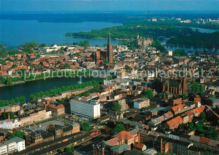 AK / Ansichtskarte Schwerin_Mecklenburg Altstadt Paulskirche Dom Pfaffenteich Schloss Schwerin_Mecklenburg Kat. Schwerin
