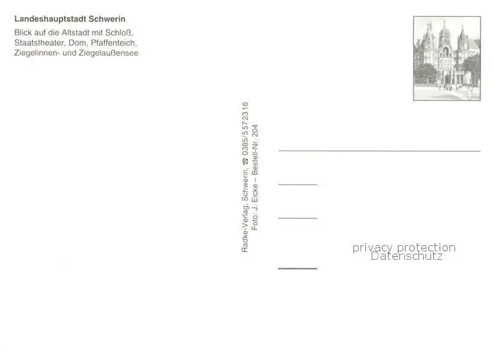 Schwerin_Mecklenburg Fliegeraufnahme mit Altstadt Schloss Staatstheater Dom Pfaffenteich Ziegelinnen und Ziegelaussensee Schwerin_Mecklenburg postalisch nicht gelaufen nach 1965 Erhaltung siehe scans [WerneD78] WernPID7
