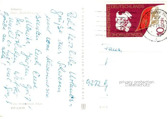 Schwerin_Mecklenburg Hotel Stadt Schwerin Schwerin_Mecklenburg postalisch gelaufen 1976 Erhaltung siehe scans [NatalD47] NataID47