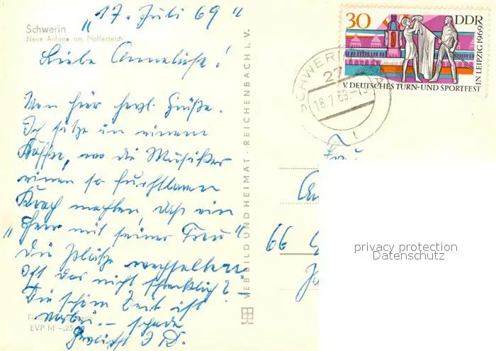Schwerin_Mecklenburg Neue Anlage am Pfaffenteich Schwerin_Mecklenburg postalisch gelaufen 1969 Erhaltung siehe scans [WerneD78] WernPID7