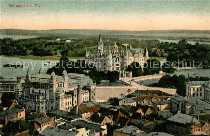 AK / Ansichtskarte Schwerin_Mecklenburg Panorama mit Schloss Schwerin_Mecklenburg