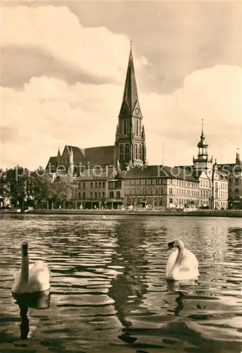 AK / Ansichtskarte Schwerin_Mecklenburg Pfaffenteich mit Dom Schwaene Schwerin_Mecklenburg