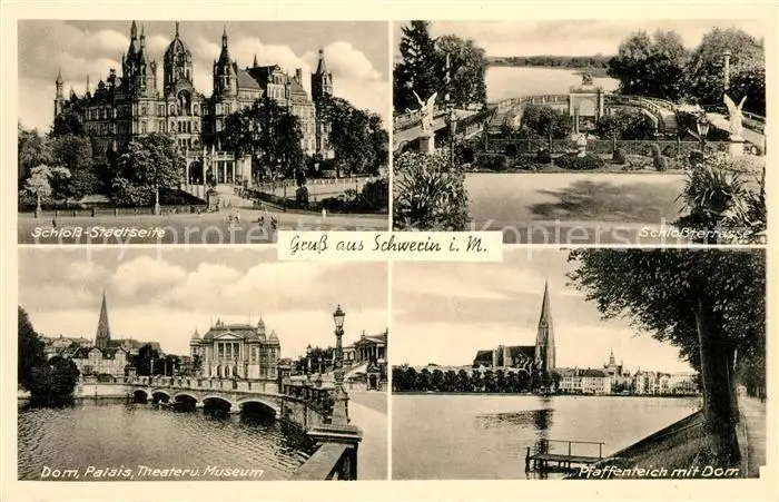 AK / Ansichtskarte Schwerin_Mecklenburg Schloss Schlossterrasse Dom Palais Theater Museum Pfaffenteich Schwerin_Mecklenburg