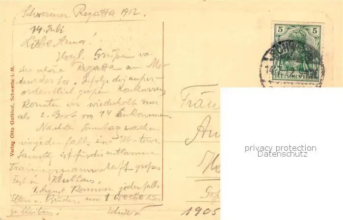 Schwerin_Mecklenburg Schloss Seeseite Schwerin_Mecklenburg postalisch gelaufen 1912 Erhaltung siehe scans [WerneD78] WernPID7
