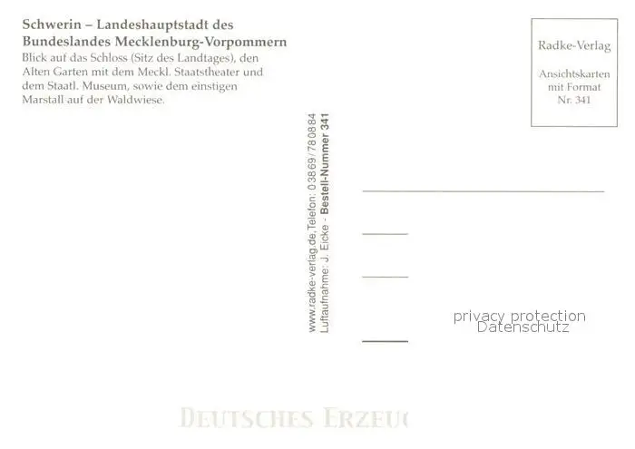 Schwerin_Mecklenburg Schloss Staatstheater Museum Marstall Alter Garten Fliegeraufnahme Schwerin_Mecklenburg postalisch nicht gelaufen nach 1965 Erhaltung siehe scans [WerneD78] WernPID7