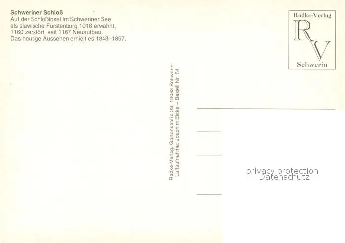 Schwerin_Mecklenburg Schweriner Schloss Fliegeraufnahme Schwerin_Mecklenburg postalisch nicht gelaufen nach 1965 Erhaltung siehe scans [WerneD78] WernPID7