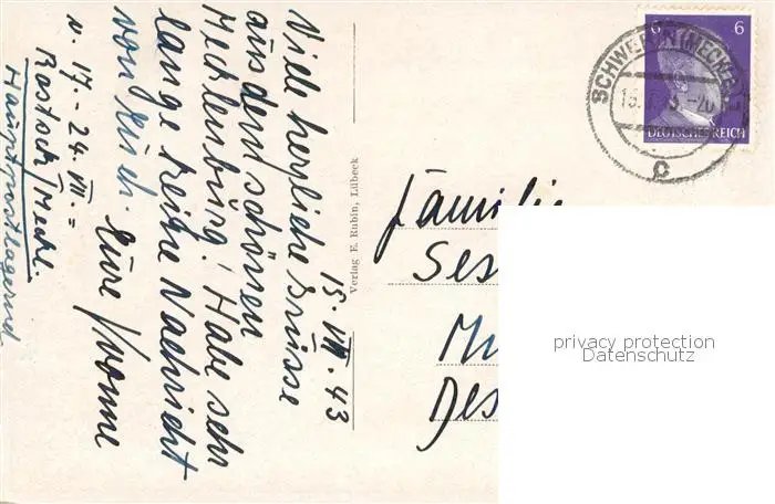 Schwerin__Mecklenburg Am Pfaffenteich postalisch gelaufen 1943 Erhaltung siehe scans [FriedD77] Frierer