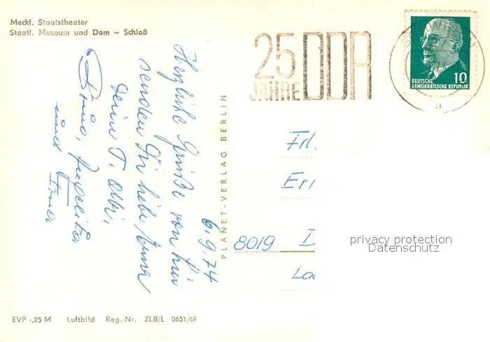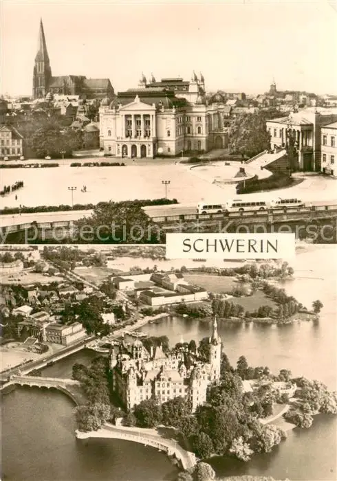 Schwerin__Mecklenburg Fliegeraufnahme Meckl. Staatstheater Staatl. Museum u. Dom m. Schloss postalisch gelaufen 1974 Erhaltung siehe scans [LiesaD40] LiesID40