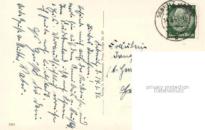 Sebnitz Panorama Blick nach dem Lilienstein Stadt der Kunstblumen Sebnitz postalisch gelaufen 1941 Erhaltung siehe scans [FriedD77] Frierer