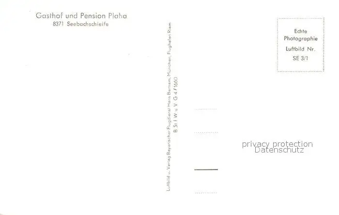 Seebachschleife Fliegeraufnahme Gasthaus Pension Plaha Seebachschleife postalisch nicht gelaufen nach 1965 Erhaltung siehe scans [LiesaD40] LiesID40