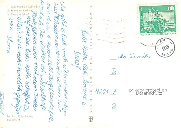 Seeburg_Eisleben Badestrand am Suessen See Bungalow Siedlung Schloss Seeburg_Eisleben postalisch gelaufen 1974 Erhaltung siehe scans [FriedD77] Frierer
