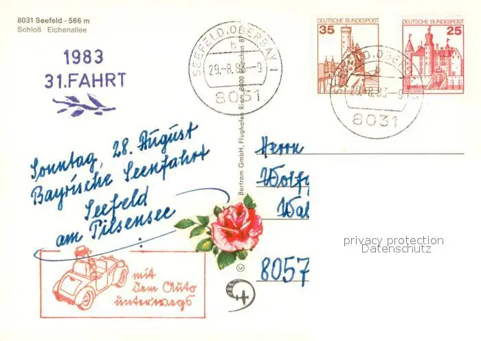 Seefeld_Starnberg Schloss Eichenallee Fliegeraufnahme Seefeld_Starnberg postalisch gelaufen 1983 Erhaltung siehe scans [WerneD78] WernPID7