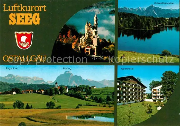AK / Ansichtskarte Seeg Landschaftspanorama Alpen Schaltenweiher Sporthotel Schloss Neuschwanstein Seeg