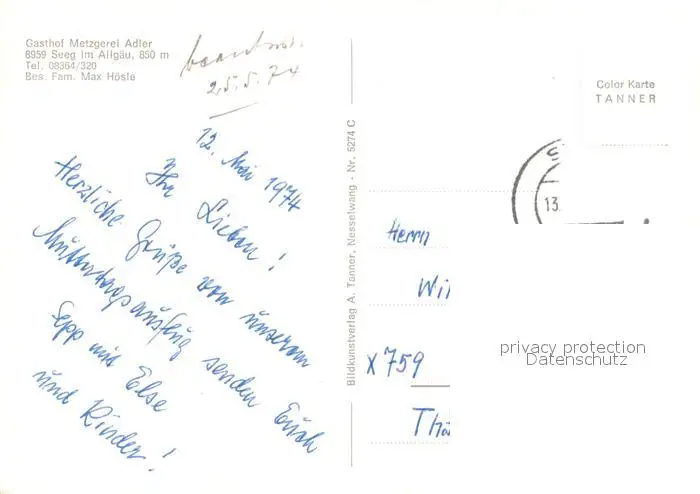 Seeg Panorama Gasthof Adler Gastraeume Seeg postalisch gelaufen 1974 Erhaltung siehe scans [WerneD78] WernPID7