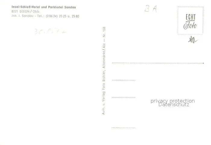 Seeon-Seebruck Insel Schloss Hotel Parkhotel Sandau Restaurant Seeon-Seebruck postalisch nicht gelaufen nach 1965 Erhaltung siehe scans [FriedD77] Frierer