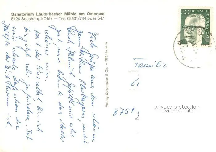Seeshaupt Sanatorium Lauterbacher Muehle am Ostersee Restaurant Seeshaupt postalisch gelaufen nach 1965 Erhaltung siehe scans [FriedD77] Frierer