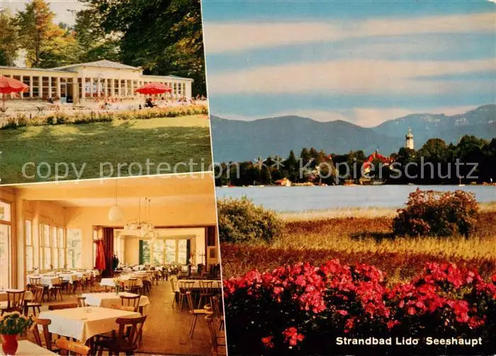 AK / Ansichtskarte Seeshaupt_Starnberger_See Strandbad Lido Gastraum Panorama