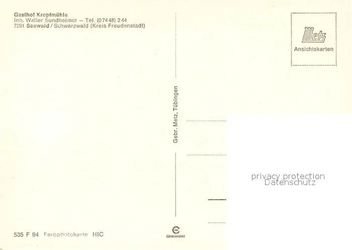 Seewald Gasthof Kropfmuehle Seewald postalisch nicht gelaufen nach 1965 Erhaltung siehe scans [WerneD78] WernPID7