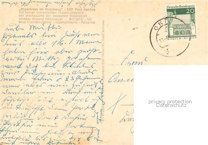 Sehlde_Salzgitter Jaegerhaus im Hainberg Hubertuskapelle Felsen Skulpturen Poesie Sehlde Salzgitter postalisch gelaufen ca. 1968 Erhaltung siehe scans [FriedD77] Frierer
