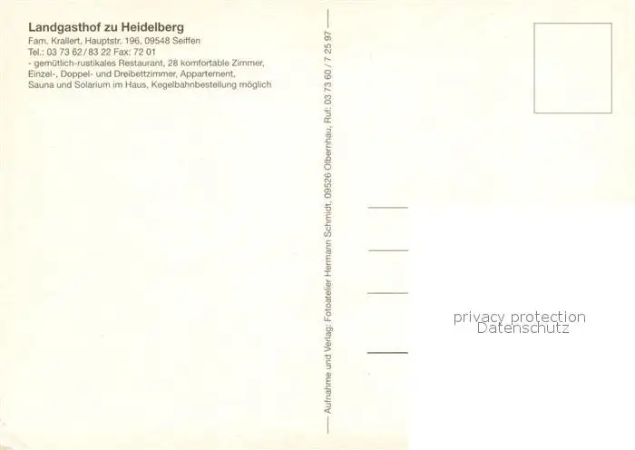 Seiffen_Erzgebirge Landgasthof zu Heidelberg Restaurant Fremdenzimmer Seiffen Erzgebirge postalisch nicht gelaufen nach 1965 Erhaltung siehe scans [FriedD77] Frierer