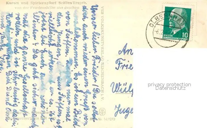 Seiffen_Erzgebirge Stadtpanorama Blick von der Friedenshoehe Seiffen Erzgebirge postalisch gelaufen 1962 Erhaltung siehe scans [FriedD77] Frierer
