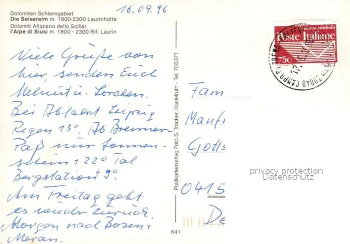 Seiseralm_Chiemgau Laurinhuette Seiseralm Chiemgau postalisch gelaufen 1996 Erhaltung siehe scans [LiesaD40] LiesID40