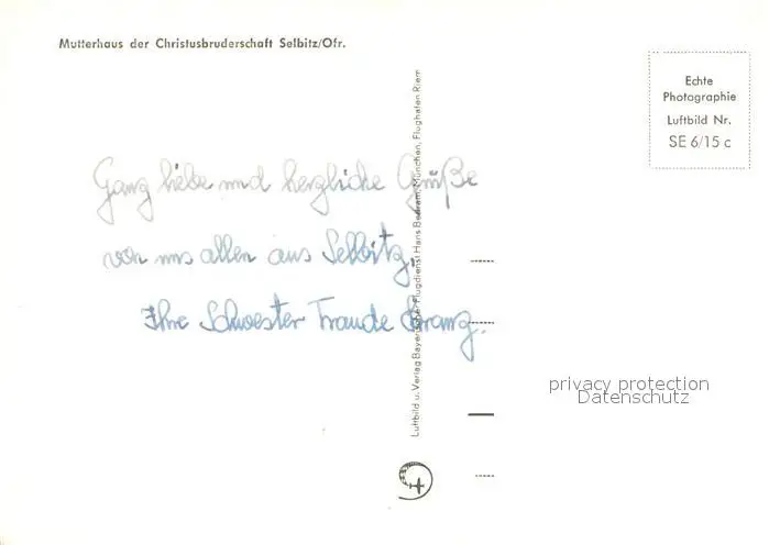 Selbitz_Oberfranken Mutterhaus der Christusbruderschaft Fliegeraufnahme Selbitz Oberfranken postalisch nicht gelaufen nach 1965 Erhaltung siehe scans [FriedD77] Frierer