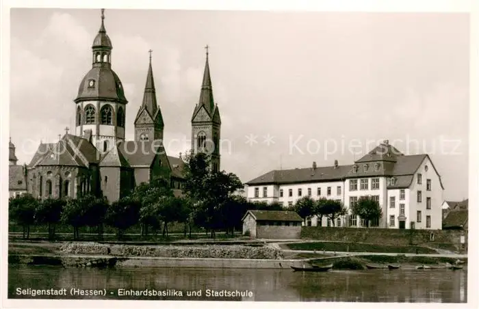 Seligenstadt_Hessen Kategorie Alte Ansichtskarten Postkarten bx90924 Seligenstadt_Hessen Einhardsbasilika Stadtschule Seligenstadt_Hessen postalisch nicht gelaufen Erhaltung siehe scans [PaolaD17]