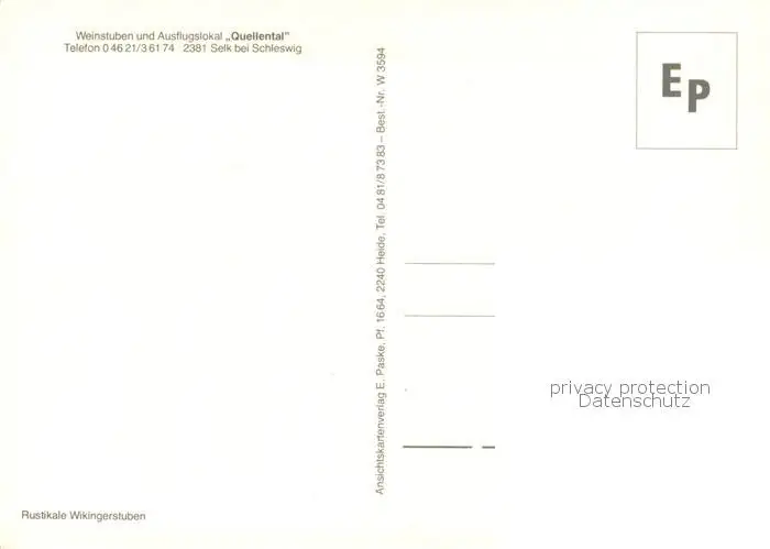 Selk Weinstube u. Ausflugslokal Quellental Innenansicht Selk postalisch nicht gelaufen nach 1965 Erhaltung siehe scans [LiesaD40] LiesID40