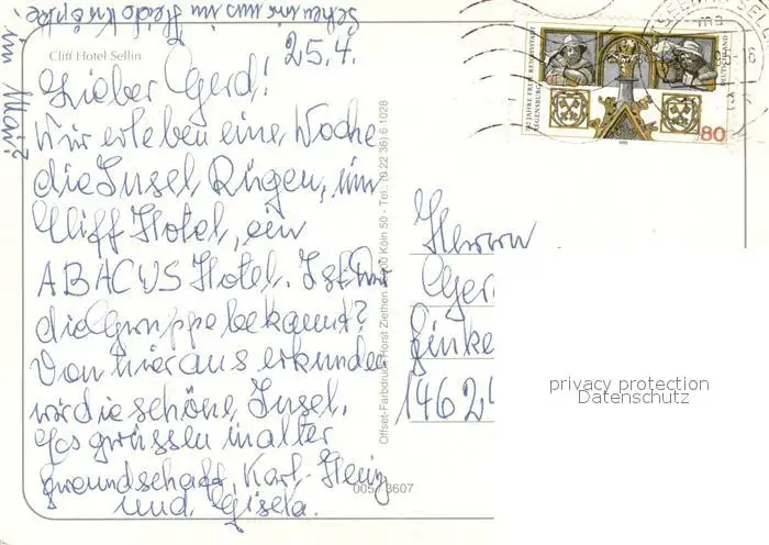 Sellin_Ruegen Cliff Hotel Fliegeraufnahme Sellin Ruegen postalisch gelaufen 1995 Erhaltung siehe scans [FriedD77] Frierer