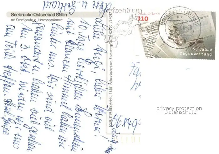 Sellin_Ruegen Seebruecke Hotel mit Schraegaufzug Himmelsstuermer Sellin Ruegen postalisch gelaufen 2000 Erhaltung siehe scans [WerneD78] WernPID7