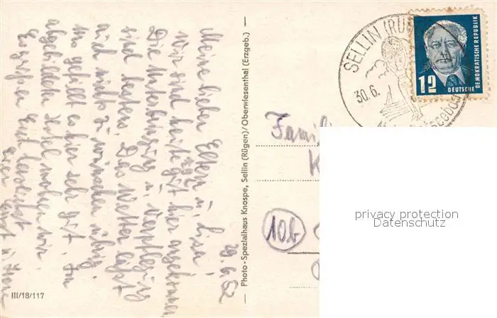 Sellin_Ruegen Sellin Ruegen postalisch gelaufen 1952 Erhaltung siehe scans [PaolaD17] PaolPID1