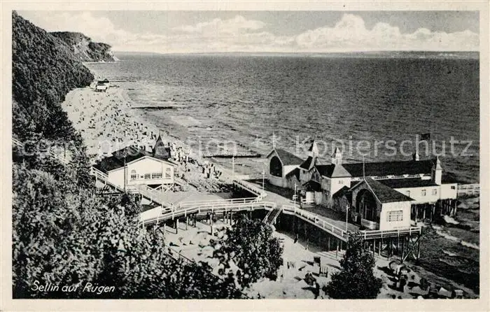 Sellin_Ruegen Strandpartie Seebruecke Sellin Ruegen postalisch nicht gelaufen 1949 Erhaltung siehe scans [WerneD78] WernPID7