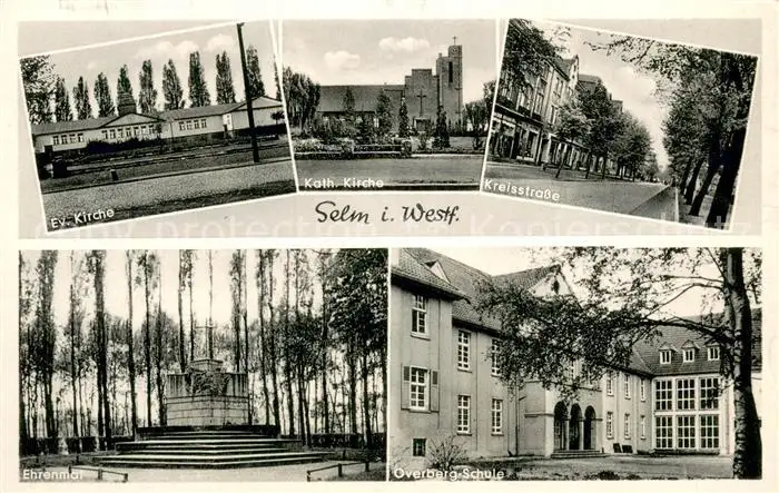 Selm Ev Kirche Kath Kirche Kreisstrasse Ehrenmal Overberg Schule Selm postalisch nicht gelaufen 1921-1965 Erhaltung siehe scans [WerneD78] WernPID7
