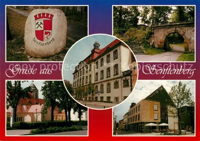 AK / Ansichtskarte Senftenberg_Niederlausitz Stadtwappen Schlosspark Amtsgericht Peter Pauls Kirche Rathaus Senftenberg_Niederlausitz