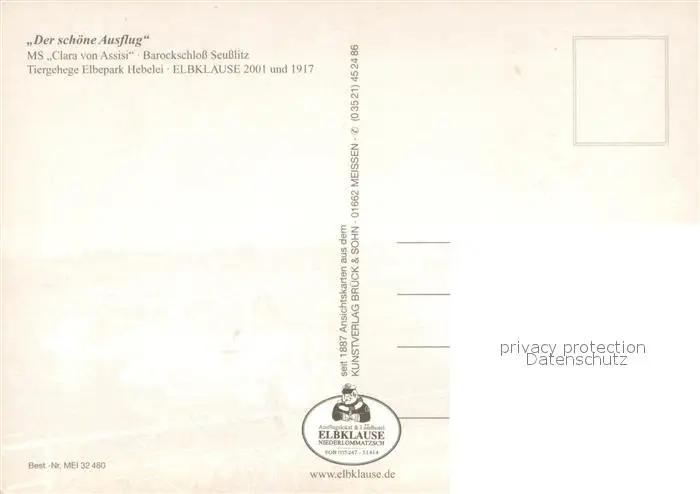 Seusslitz Der schoene Ausflug MS Clara von Assisi Barockschloss Tiergehege Elbepark Hebelei Gaststaette Restaurant Elbklause Seusslitz postalisch nicht gelaufen nach 1965 Erhaltung siehe scans [FriedD77] Frierer