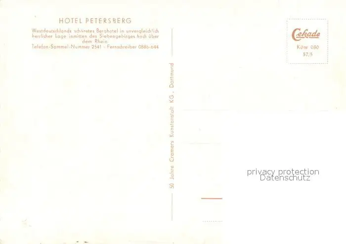 Siebengebirge Hotel Petersberg Rheinpartie Fliegeraufnahme Siebengebirge postalisch nicht gelaufen nach 1965 Erhaltung siehe scans [WerneD78] WernPID7