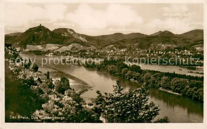 Siebengebirge Rheinpartie mit Drachenfels Siebengebirge postalisch nicht gelaufen 1940 Erhaltung siehe scans [WerneD78] WernPID7