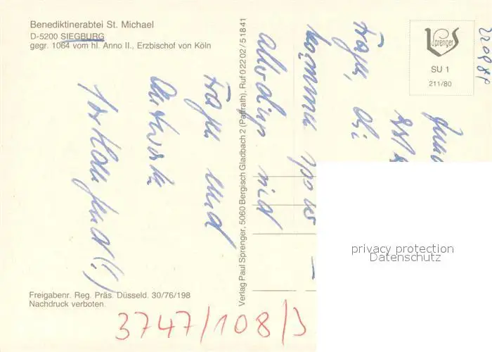 Siegburg Benediktinerabtei St. Michael Michaelsberg Siegburg postalisch nicht gelaufen 1980 Fliegeraufnahme Erhaltung siehe scans [FriedD77] Fliegeraufnahme Frierer