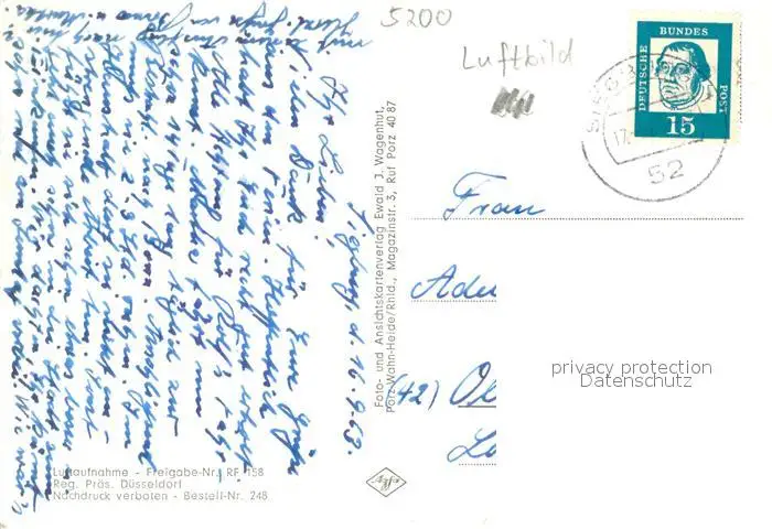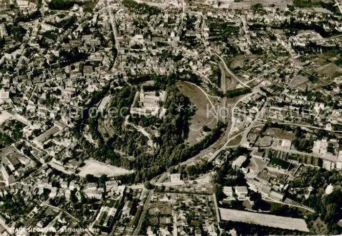 Siegburg mit Abtei Michaelsberg Siegburg postalisch gelaufen 1963 Fliegeraufnahme Erhaltung siehe scans [FriedD77] Fliegeraufnahme Frierer