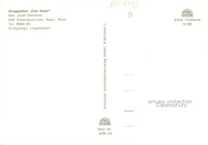 Silbersbach Berggasthof Zum Osser Restaurant Silbersbach postalisch nicht gelaufen 1972 Erhaltung siehe scans [FriedD77] Frierer