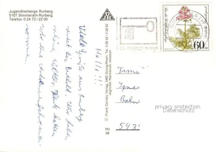 Simmerath Rurberg Jugendherberge Fliegeraufnahme Simmerath postalisch gelaufen nach 1965 Erhaltung siehe scans [LiesaD40] LiesID40