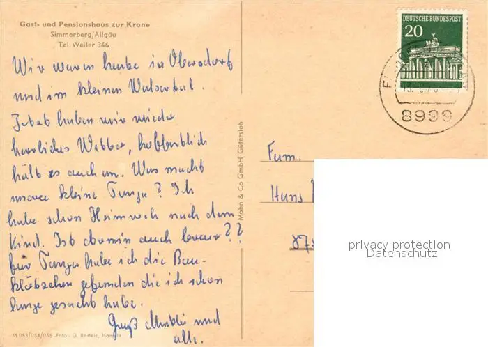 Simmerberg Gasthaus Pension zur Krone Landschaftspanorama Simmerberg postalisch gelaufen 1970 Erhaltung siehe scans [FriedD77] Frierer
