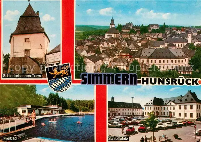 AK / Ansichtskarte Simmern_Hunsrueck Schinderhannes Turm Freibad Schlossplatz Simmern Hunsrueck