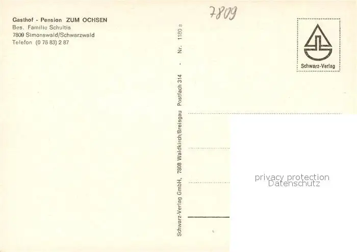 Simonswald Gasthaus Pension Zum Ochsen Simonswald postalisch nicht gelaufen nach 1965 Erhaltung siehe scans [KathaD81] Kathoren