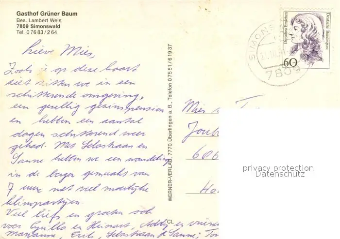 Simonswald Gasthof Gruener Baum Simonswald postalisch gelaufen nach 1965 Erhaltung siehe scans [WerneD78] WernPID7