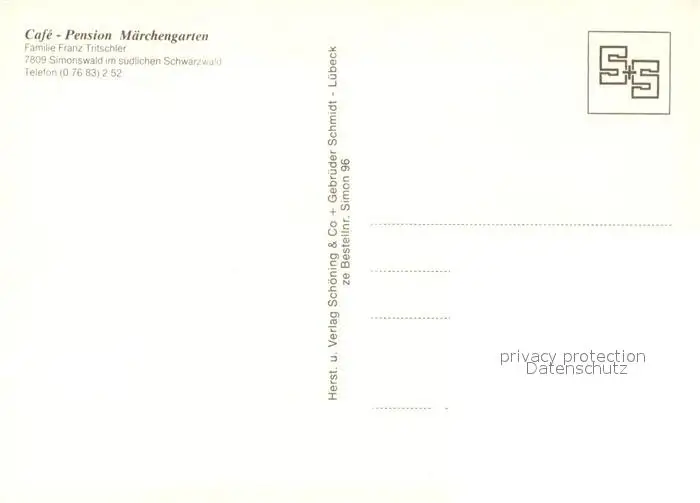 Simonswald_Simonswaeldertal Café Pension Maerchengarten postalisch nicht gelaufen nach 1965 Erhaltung siehe scans [LiesaD40] LiesID40