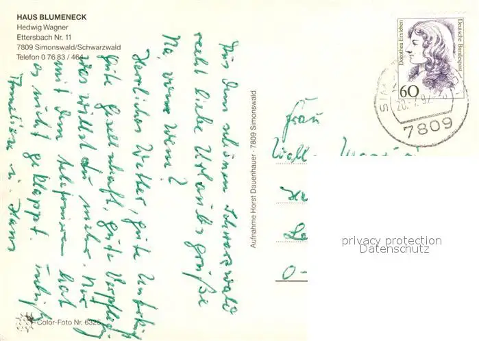 Simonswald_Simonswaeldertal Haus Blumeneck Fliegeraufnahme postalisch nicht gelaufen nach 1965 Erhaltung siehe scans [WerneD78] WernPID7