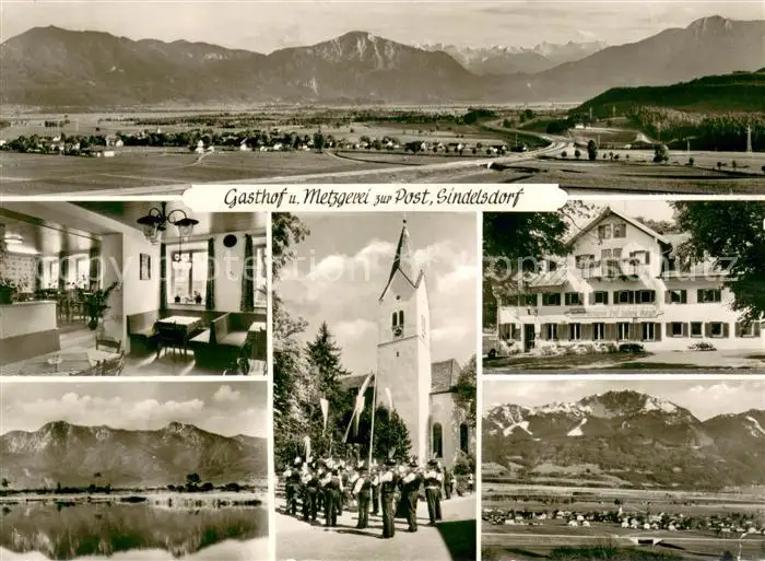 AK / Ansichtskarte Sindelsdorf Panorama Gasthof und Metzgerei zur Post Gaststube Kirche Sindelsdorf