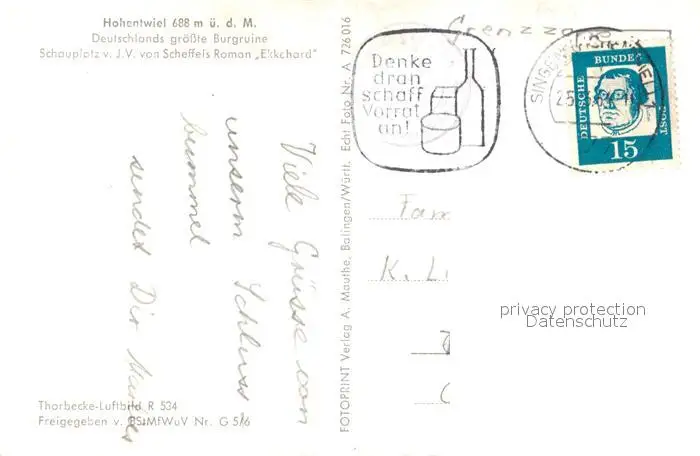 Singen_Hohentwiel Burgruine auf dem Hohentwiel Singen Hohentwiel postalisch gelaufen 1964 Erhaltung siehe scans [WerneD78] WernPID7